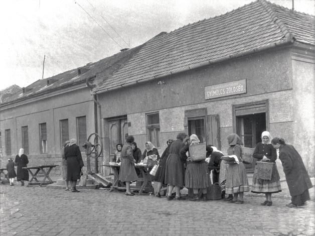 Nyáron, amikor elkezdődött a diny nyeszezon, akkor az Óváros tér 1–5. sz. házak előtti helyet a dinnyések foglal ták el. A termelők az első dinnyeszál lítmánnyal oda is költöztek, és egészen augusztus végéig, szeptember elejéig maradtak, amíg a görög- és sárgadinnye is jó édes, érett volt. Hoztak magukkal nyolc-tíz ládát, amikkel elkerítettek egy közel hatszor öt méteres részt. Ennek a közepére rakták a mérlegü ket. A ládákkal körülrakott területet jó vastagon behintették szalmával, s erre rakták a dinnyehegyet. Egyik oldalon sorakoztak a nagyméretű, haragoszöld héjú görögdinnyék, a másikon pedig a sárga szín minden változatát felvo nultató, öklömnyi méretűtől a futballlabda nagyságúig nőtt sárgadinnyék. A halmok messzebbről nézve olyan lát ványt nyújtottak, mintha egy ostromra készülő várban lettek volna halomba rakva az ágyúgolyóbisok. Amikor söté tedni kezdett, a kupacokat letakarták ponyvával, az árusító család egy-két tagja pedig ottmaradt éjszakára. Lá dákból és ponyvákból kuckót készítet tek, amelyben alul a szalmára pokró cokat, öreg kabátokat terítettek, és ott aludtak. Lefekvésig még összeültek, be szélgettek, sőt – va lószínűleg jó vásár utáni estén – még dalolgattak is. Ilyen meleg, nyárvégi estéken mi, Óvá ros téri gyerekek is kinn szaladgáltunk sötétedésig, és sokszor néztük a diny nyéseket, hiszen megjelenésük, tábor verésük külön élményt jelentett.”