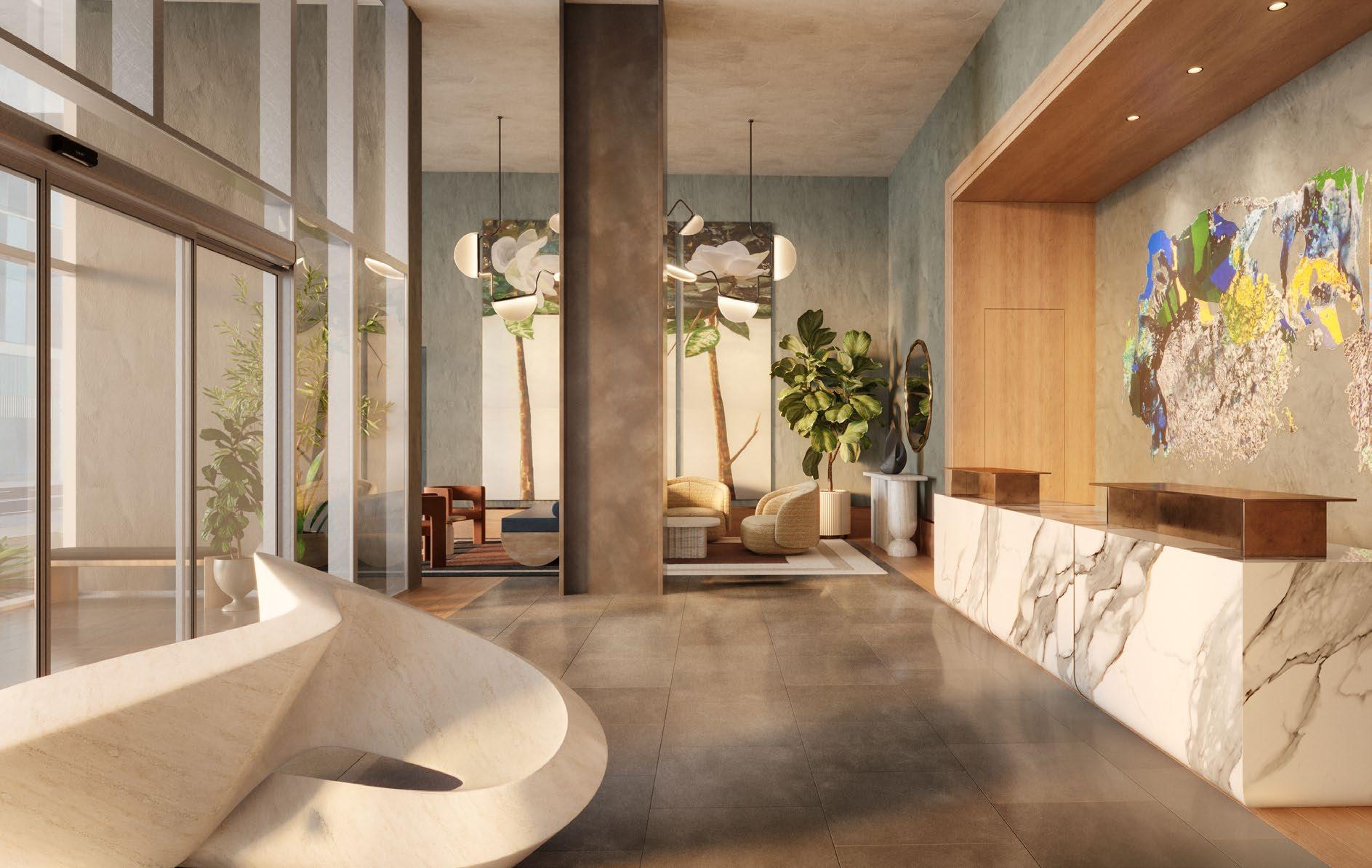 sky lounge clubroom, two guest suites, speakeasy, gallery, two model units, rooftop pool and outdoor space furnishings