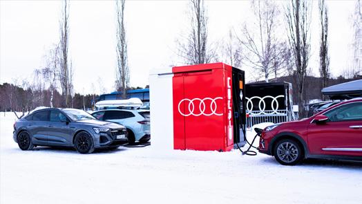 UNDER SPORTLOVET sattes en mobil laddstation upp i Sveg för att underlätta resan för många fjällresenärer. Totalt laddade cirka 750 bilar vid laddstationen som var ett samarbete mellan Audi, SkiStar, Jämtkraft och Mer för att bidra till mer hållbar fjällturism.