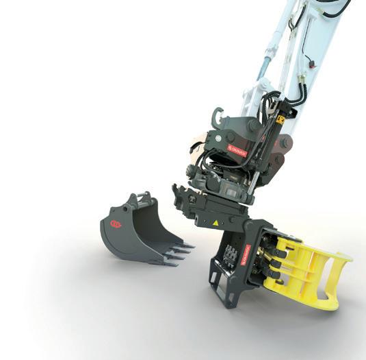 • Blixtsnabba byten av hydrauliska, elektriska och mekaniska redskap direkt inifrån hytten.