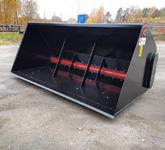 Sladda grusvägen, röj snö, runtomsvängande schaktblad, kan utrustas med sidoförskjutning. Stödhjul, tandstål i Olofsfors, sidovinge. 3 bredder: 2,44 – 2,74 – 3,05 m.