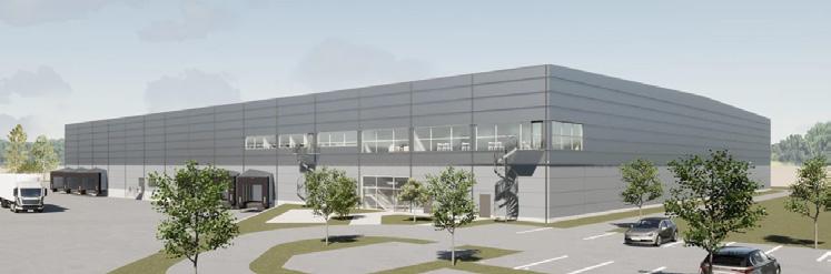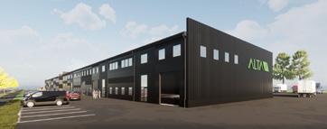 Byggnaden består av en stålstomme med fasader i antracitgrå sandwichpaneler som har högt isolervärde och brandsäkerhet.