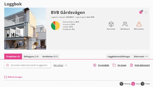 det att lägga in mängd av respektive produkt samt dess position i byggnaden. Positionen anges i en mappstruktur. Om du har en 3D-modell av byggnaden går det att exportera loggboken dit.
