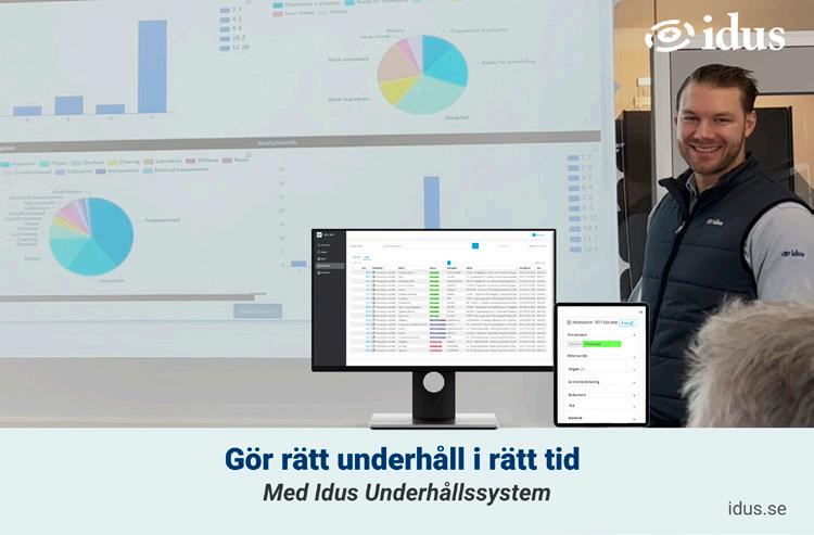 Vi hjälper våra kunder stärka sin driftsäkerhet, motverka resursslöseri och tillämpa teknisk kompetens genom att göra rätt underhåll i rätt tid med hjälp av Idus underhållssystem.
