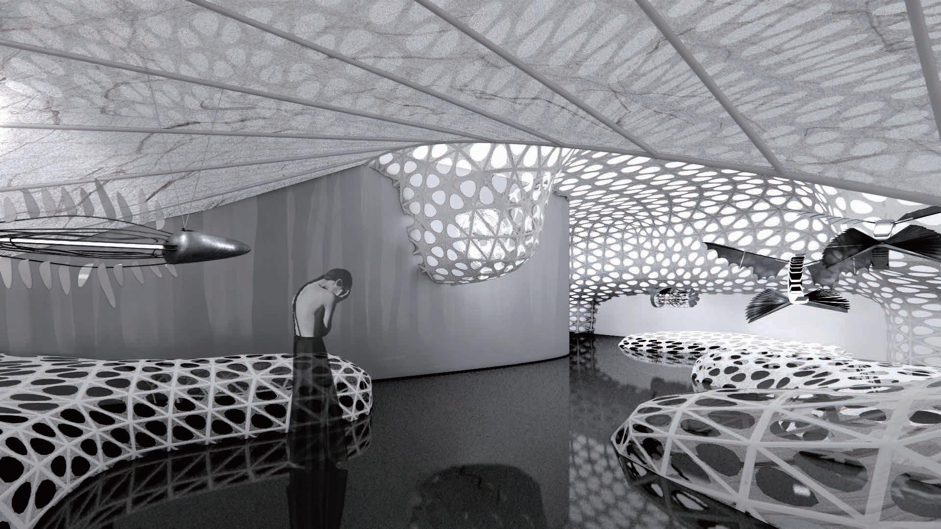 This project is about the design of exhibition space, the exhibition is about the theme of bionics, using positive and negative space transformation to explore the relationship between nature and bionics