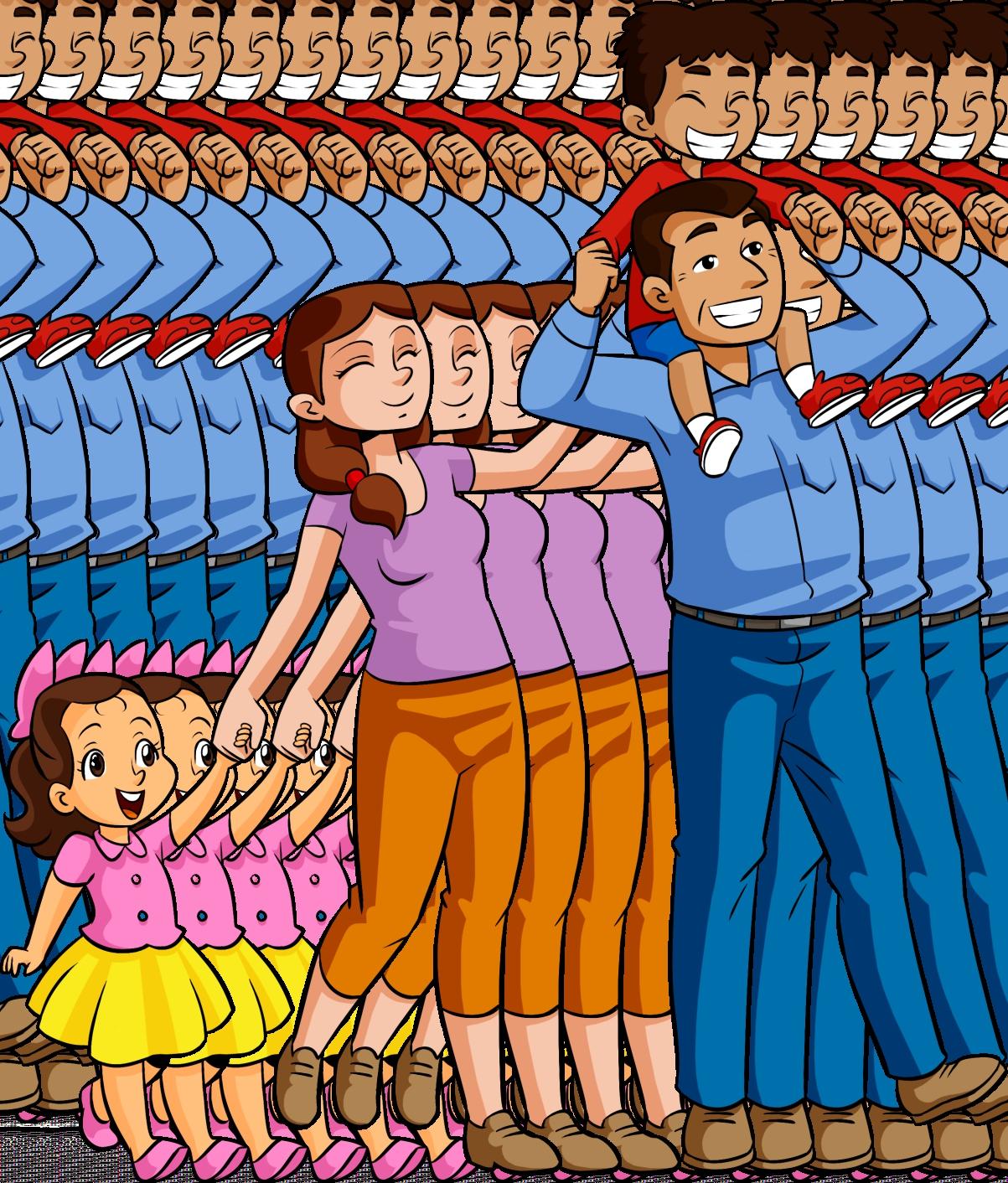 Por la TV los niños vieron imágenes de un hombre y una mujer con muy poca ropa y esto los sorprendió. Los padres vieron la reacción de los niños y se acercaron para explicarles: