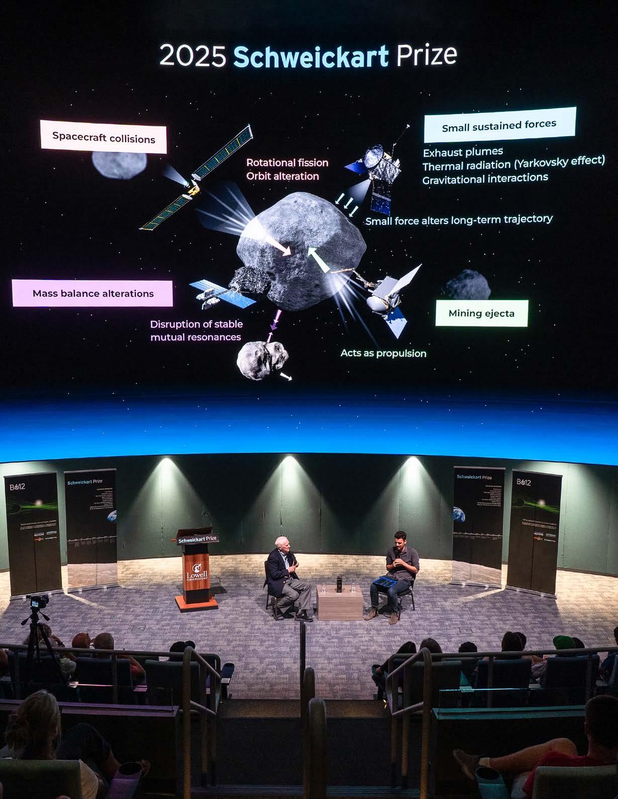 In June, Apollo astronaut Rusty Schweickart presented the 2025 Schweickart Prize in Flagstaff, Arizona, during the Asteroid Day programming at Lowell Observatory and Meteor Crater. Now in its second year of recognizing student work, the prize was awarded to a team of students whose proposal addressed the policy and economic dimensions of planetary defense. Read more on page 15.