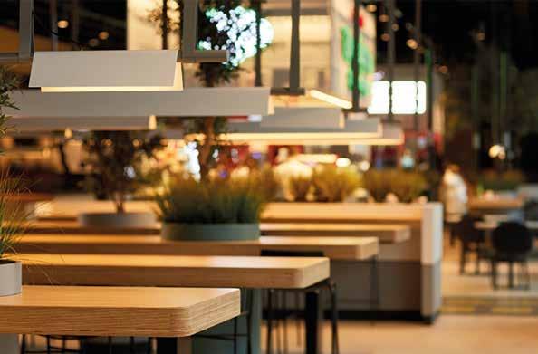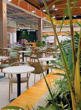 The open-air food court, airy and bright, the modern and colorful stand architecture, the proximity to Elite Club’s sports facilities and fields, and the urban, relaxed vibe— especially in the evening.