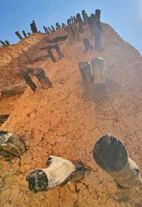 The Sudanese mosques of northern Côte d’Ivoire are built primarily from raw earth (adobe), a local material composed of earth, water, and plant fibers. Their thick walls, sometimes nearly a meter wide, provide both strength and thermal regulation. The often blind facades are animated by powerful vertical buttresses that reinforce the structure. The projecting wooden frameworks, called torons, serve as permanent scaffolding for annual maintenance work.