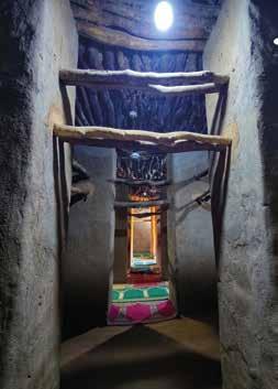 The minarets, of varying heights depending on the site, take the form of a truncated pyramid, characteristic of the Sudanese style. They are sometimes crowned with pottery, earthen balls, or ostrich eggs—symbolic elements associated with protection, fertility, and spirituality. As the style spread southward, it was adapted to a more humid climate: the buildings became lower and more compact, with reinforced buttresses capable of withstanding heavy rains.