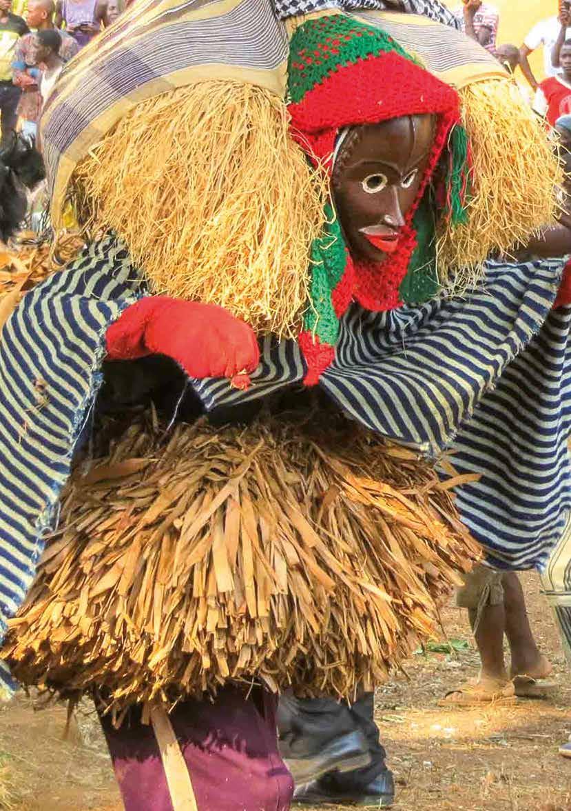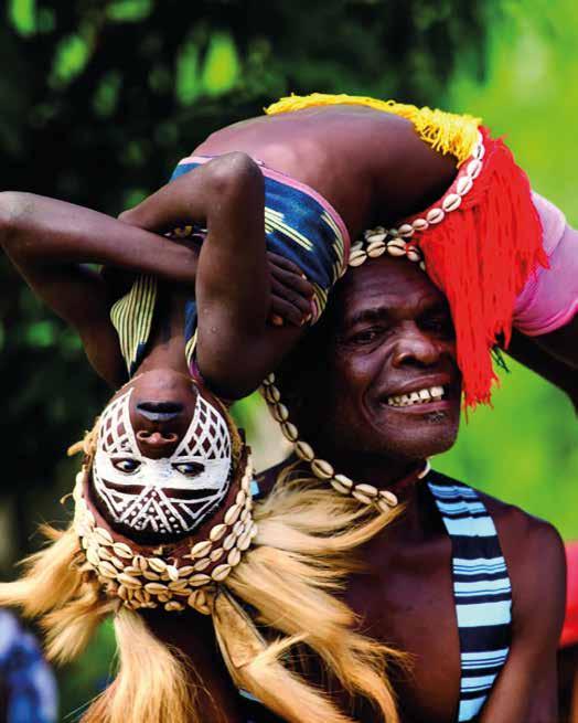 Adorned with white clay body paint, young Yacouba dancers perform somersaults, contortions, and acrobatics. Working closely with their master, they are hurled into the air and made to “land” on knives !