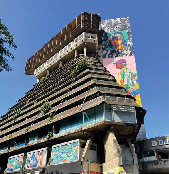 Designed by Italian architect Rinaldo Olivieri in collaboration with Ivorian architect Raymond Aka Adjo, and built between 1968 and 1973, the Pyramid offers a brutalist reinterpretation of an African market hall. With its 15 floors (about 60 meters high), it stands out as one of the first high-rise buildings in the Plateau district. To revive the soul of this iconic landmark, the “Pyramid 2023” project was launched: an open-air permanent exhibition where six international and Ivorian artists, supported by students from INSAAC, created a monumental mural.