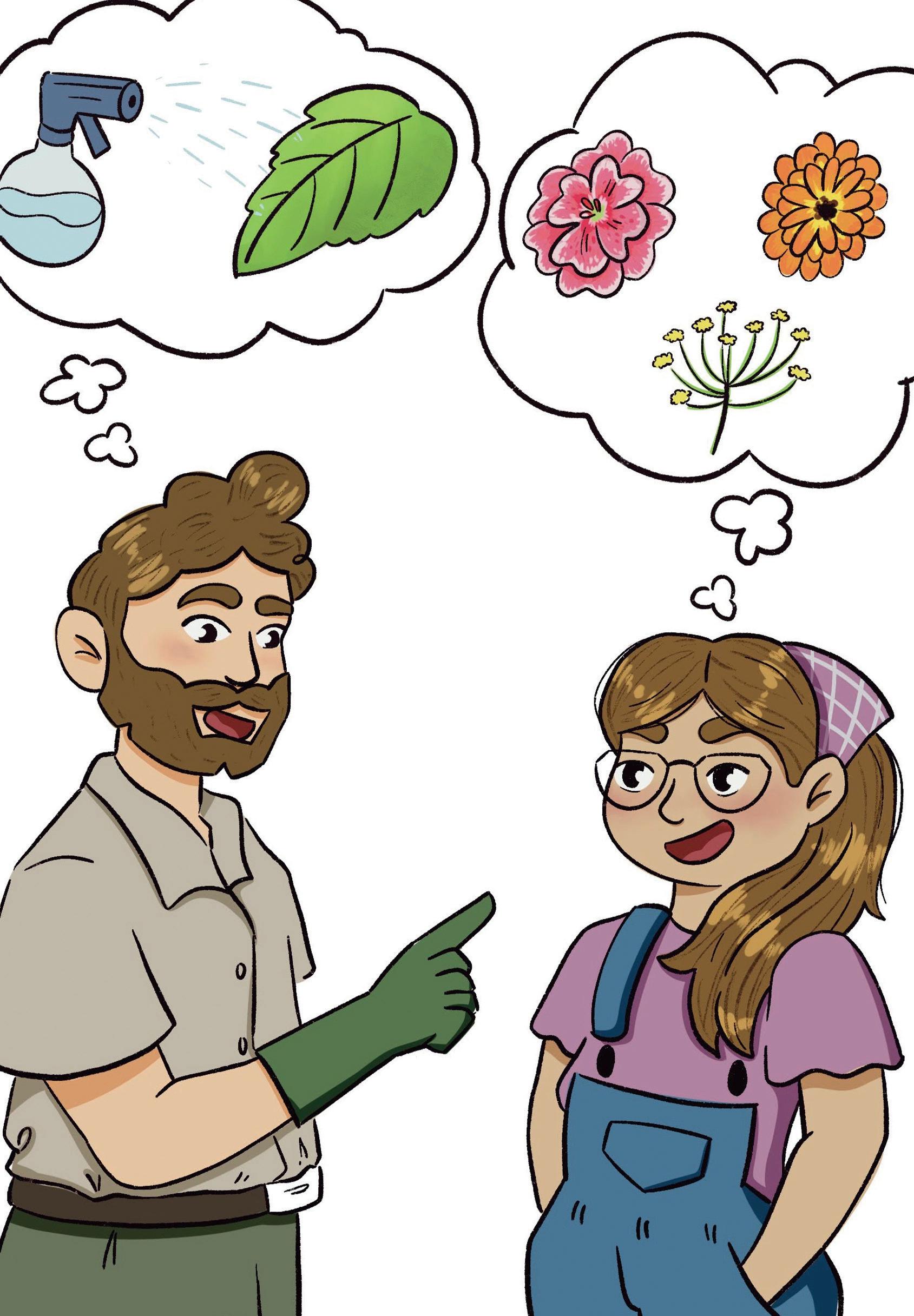 JUANITO: Me parece muy bien. También podríamos plantar albahacas con tomates, cebollas, zanahorias y lechugas. ¡Ah, y ajos!