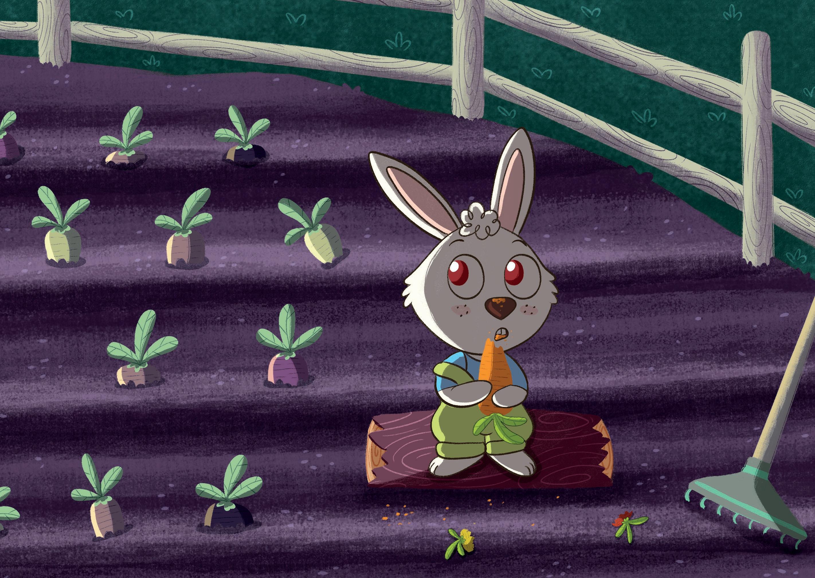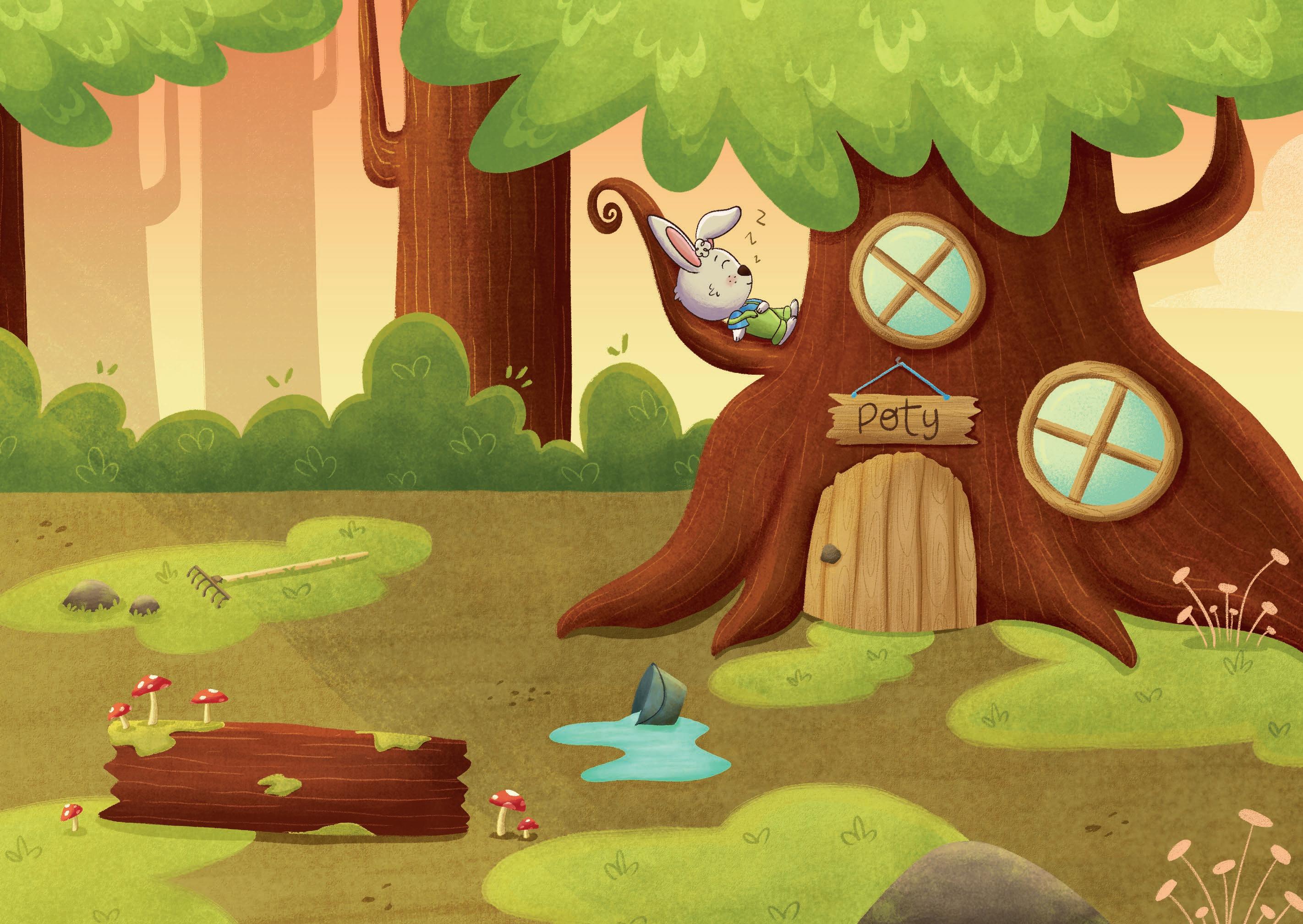 In mezzo al bosco, in un villaggio abitato da conigli bianchi, viveva Poty, un coniglietto che non amava faticare. Per questa ragione era l’unico a non possedere un orto di carote e si sfamava rubando quelle dei suoi amici, finché un giorno accadde l’impensabile…