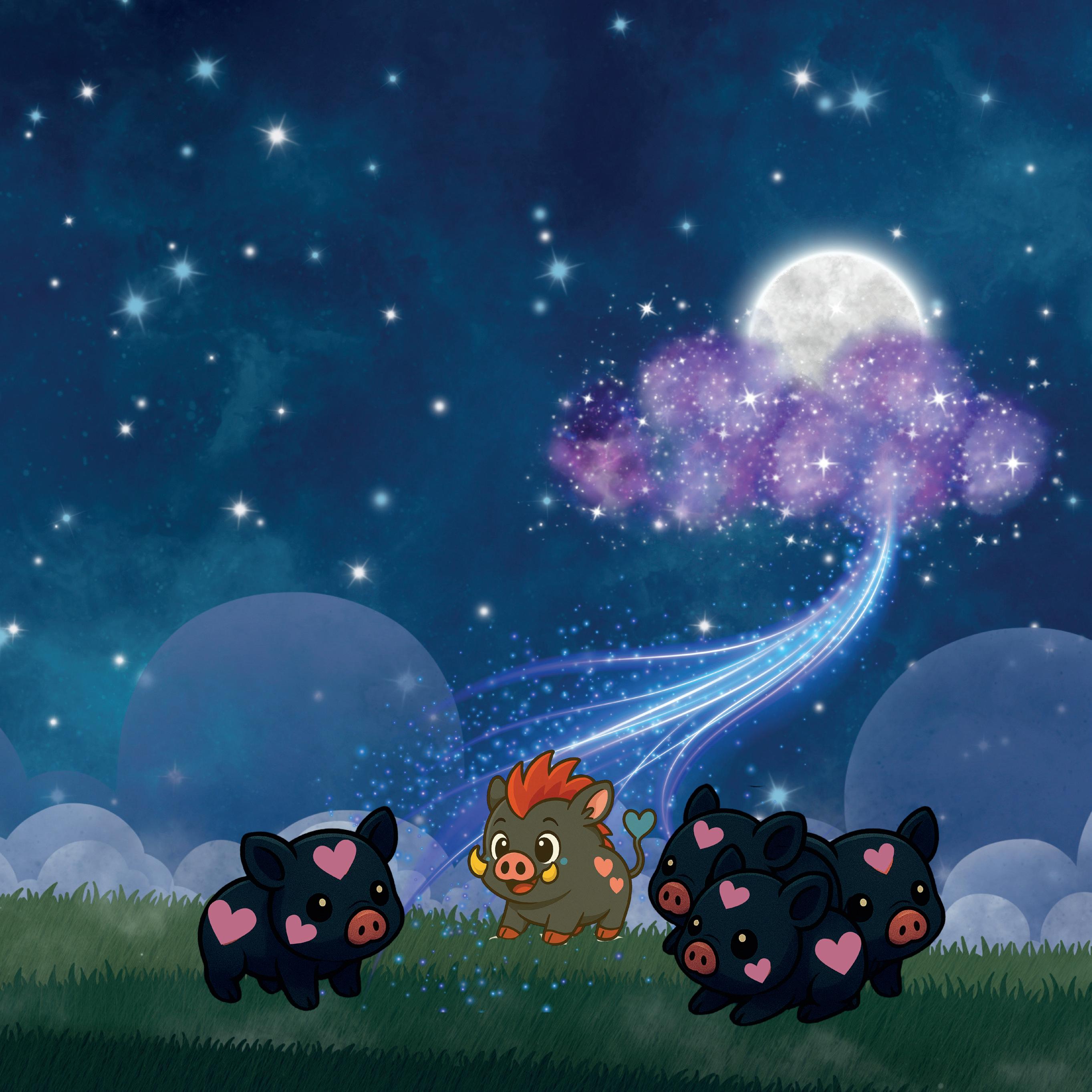 Era luna nueva y, en una pequeña granja perdida en mitad del bosque, nacieron cinco bonitos cerditos. Los cinco eran negros y con manchas rosas en forma de corazón. Sin embargo, había uno muy diferente al resto. Se llamaba Willy.