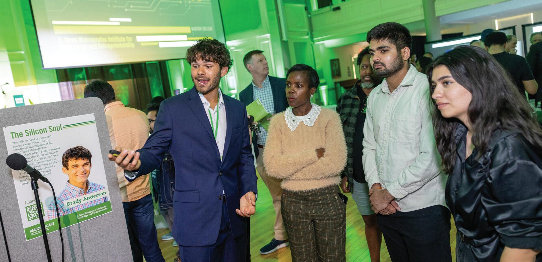 232 Babson community members came together for the Metropoulos Institute’s inaugural AI Showcase event in 2025, empowering students and alumni with innovative AI-based ventures. The event was an important opportunity for Babson’s newest Institute to build awareness on campus at the intersection of entrepreneurial leadership and new technologies.
