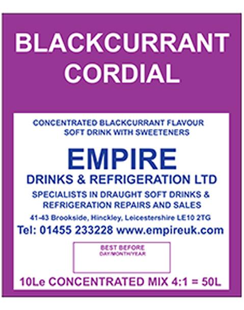 Empire Blackcurrant Cordial 10 Litres Bag In Box – Produces 50 Litres of drink at a 4:1 mix ratio which equates to 200x 250ml glasses.