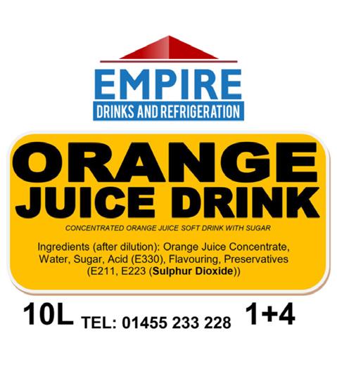 Empire Orangeade 10 Litres Bag In Box – Produces 60 Litres of drink at a 5:1 mix ratio which equates to 240x 250ml glasses.