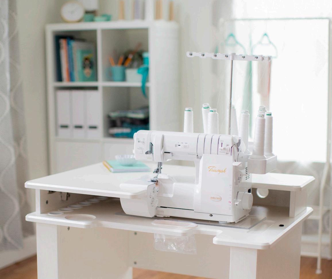 Choose the Baby Lock Triumph for 8/7/6 stitches, cover stitches, chain stitches, and the Wave stitch in addition to automatic needle and looper threading, all while being easy to thread!