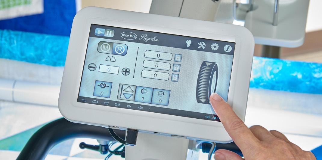 Set and easily read Stitch Control Features. The on-screen handwheel raises and lowers your needle without having to reach around the machine.