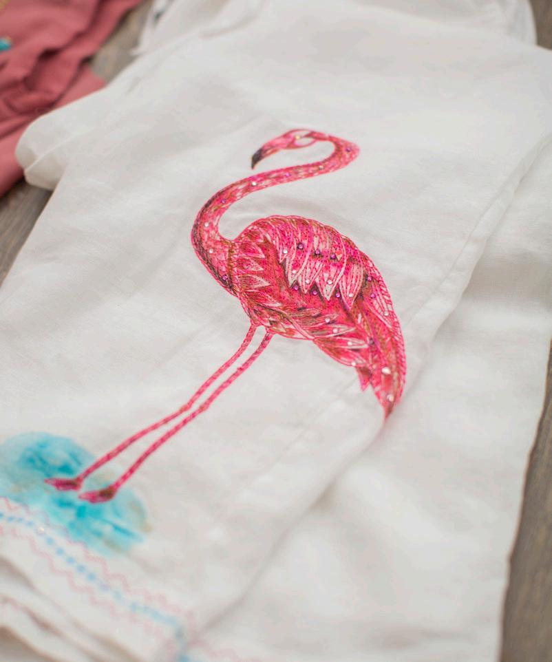 Lace, appliqués, emblems, towels, blankets, napkins, ribbon, bead work, quilting. Embroidery that needs stability, but no stabilizer remaining.