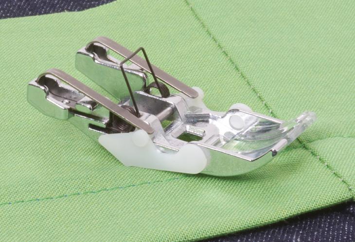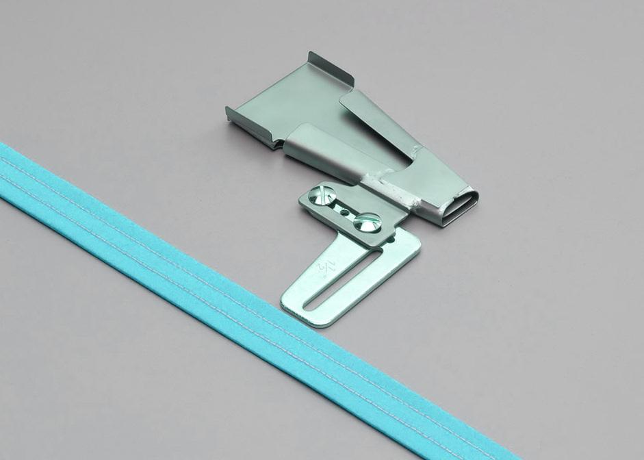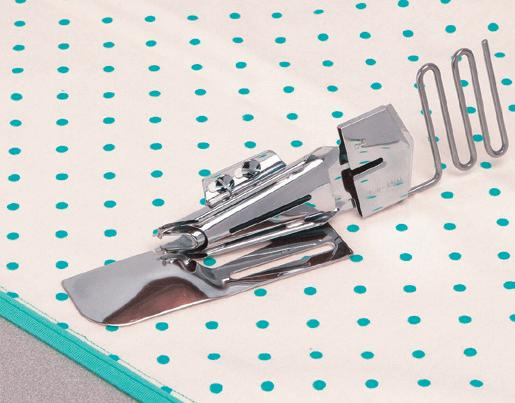 Attach quilt binding accurately using your favorite sewing machine stitches. This foot accommodates the difference in thickness between the body of a quilt and the attached binding.
