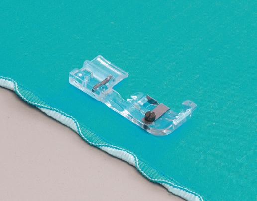 This clear foot provides better visibility when attaching ribbon and lace, or guiding lightweight decorative stitching.