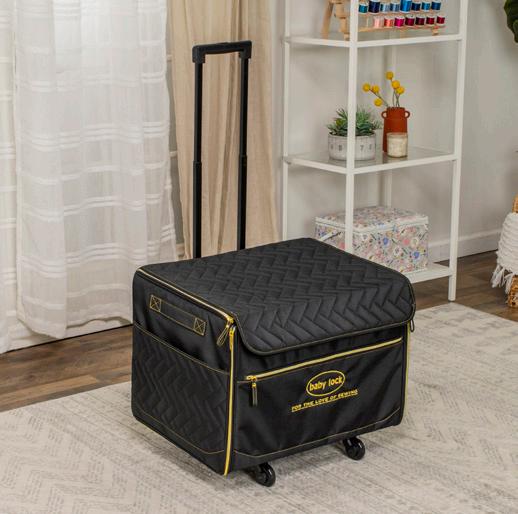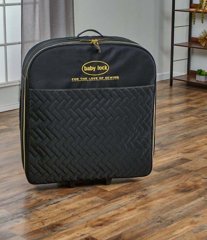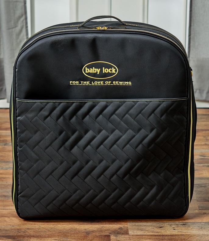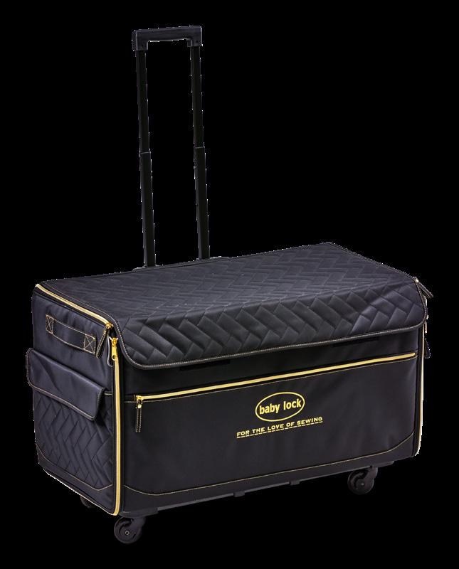 This easy-rolling trolley bag is a perfect way to take your Baby Lock machine to guild meetings, classes, events and more. Made with reinforced padding and 600 denier polyester fabric, it features a four-wheel base that includes four multi-directional wheels. Not intended for air travel.
