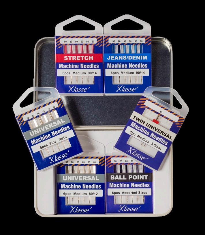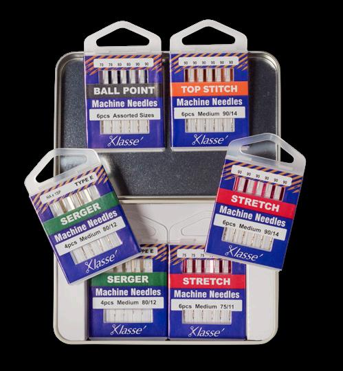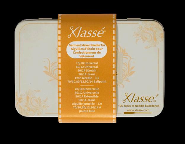 Includes the following Klasse needle cassettes: Serger HAX1SP 80/12, Stretch 75/11, Stretch 90/14, Ballpoint Needle Assort 70/10, 80/12, 90/14, and Topstitch 90/14. Also includes QR code to instructional video.