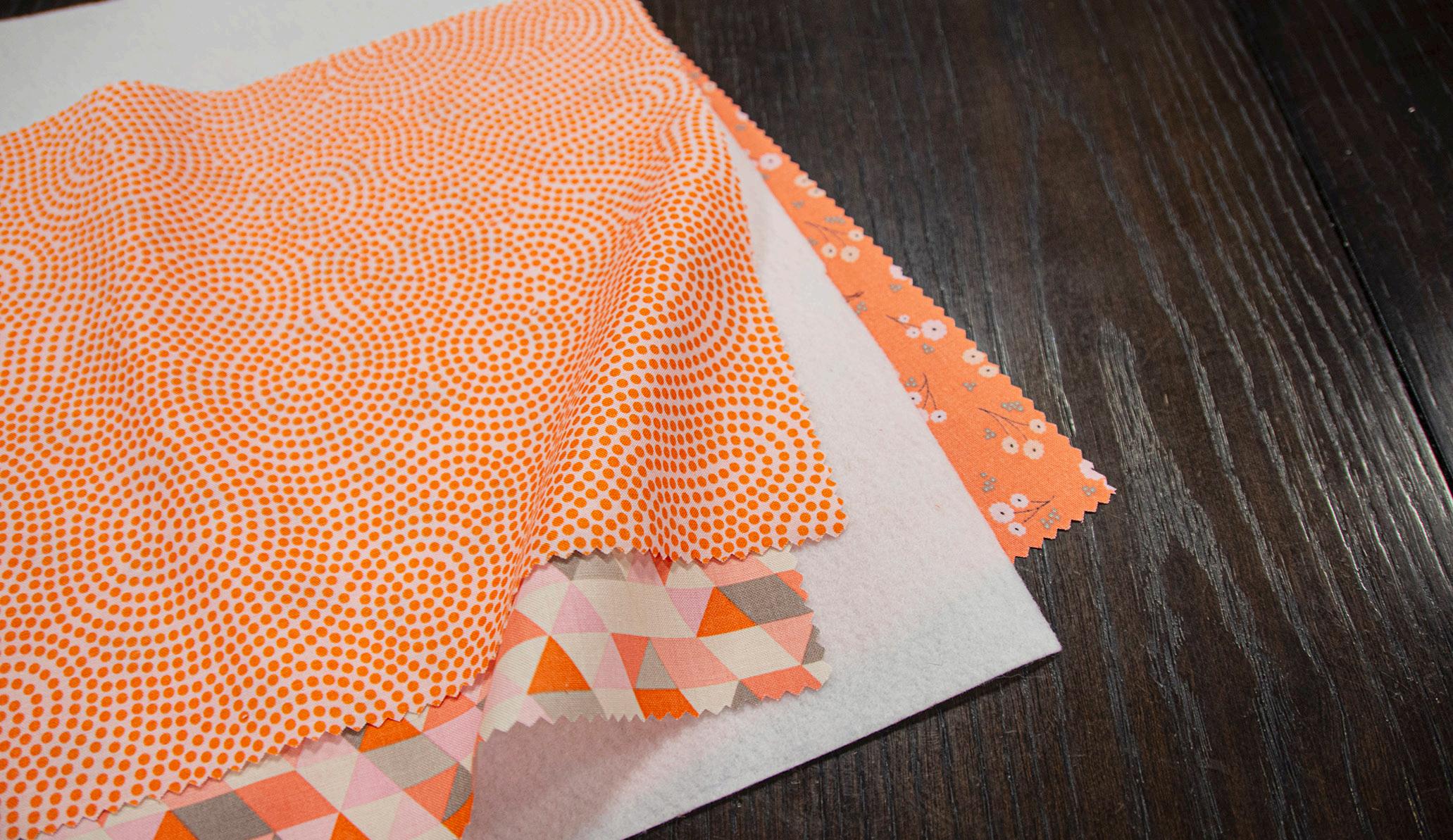 • Four 2-1/2" by 2-1/2" squares of orange fabric for orange leaves