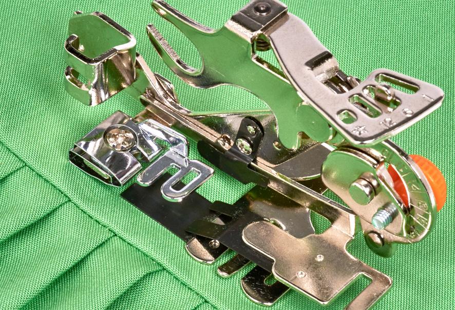 Create stunning pleats/ruffles with ease when using the Ruffling Foot. With the option to customize the depth and spacing it is possible to create pleats/ruffles that are structured and refined or detailed and elegant. Simply attach the Ruffling Foot, make the desired adjustments and stitch, adding an upscale detail to any project.