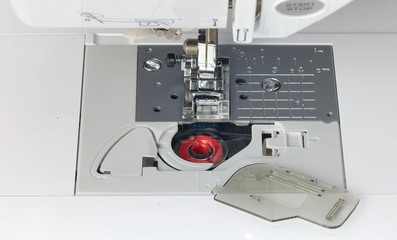 • Additional seam markings on bobbin cover for needle position preference