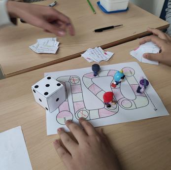 Talen zijn belangrijk! Voor Frans gingen de 5des aan de slag met Dis-moi dix mots (een jaarlijkse internationale campagne) ter bevordering van de Franse cultuur en taal. Voor Engels analyseerden de 5des spelenderwijs spelregels en pasten ze toe. Bij Latijn maakten de 1stes een driegangenmenu klaar naar de recepten van Apicius. Al doende leert men.