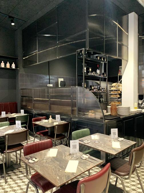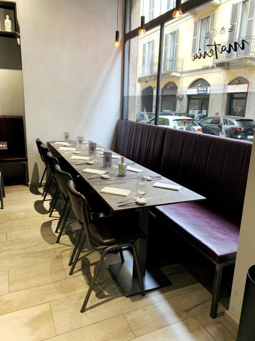 Il ristorante è stato il punto focale dello stage curriculare. I clienti sono produttori di prodotti alimentari tipici della loro regione. Le dimensioni del locale erano ridotte ed essendo in centro storico, in via del Torchio, c’erano dei vincoli da rispettare. La divisione tra cucina e zona pranzo è stata realizzata con una parete di vetro. Questo elemento ha dettato anche il resto degli elementi presenti. I portabottiglie e le mensole sono stati progettati su misura, così come tutti gli elementi divisori tra gli ambienti.
