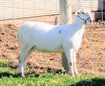 White Brood ewe. NABSSAR registered. Sister was second high seller in North Star in 2023. Maternal sister to Fuller families Night Storm ewe. Exposed to Fuller 3189 RR Lathum. My idea in this was to create an other Night Storm!! But I will let you finish the story!! Her daughter is also in this sale, I might sell them choice!!! This is an incredible chance to get in on the factory of back drop genetics!! RR