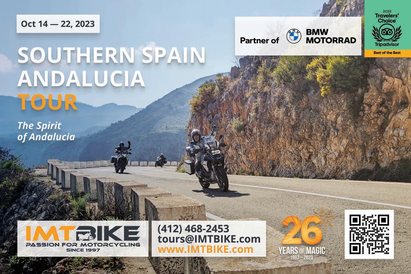 BACKROADS (ISSN 1087-2088) is published monthly by BACKROADS™, Inc. 2023. All rights reserved. BACKROADS™ may not be reproduced in any manner without speci c written consent from the publisher. BACKROADS™ welcomes and encourages submissions (text and photos) and suggestions. Include phone number with submissions. BACKROADS™ will only return material with enclosed suf cient postage. The written articles and opinions printed in BACKROADS™ are not necessarily those of the publisher and should not be considered an endorsement. The Rip &Rides® published are ridden on the sole responsibilty of the rider. BACKROADS™ is not responsible for the conditions of the public roadways traversed. Please respect the environment, read your owner’s manual and wear proper protective gear and helmet. Ride within your limits, not over them.