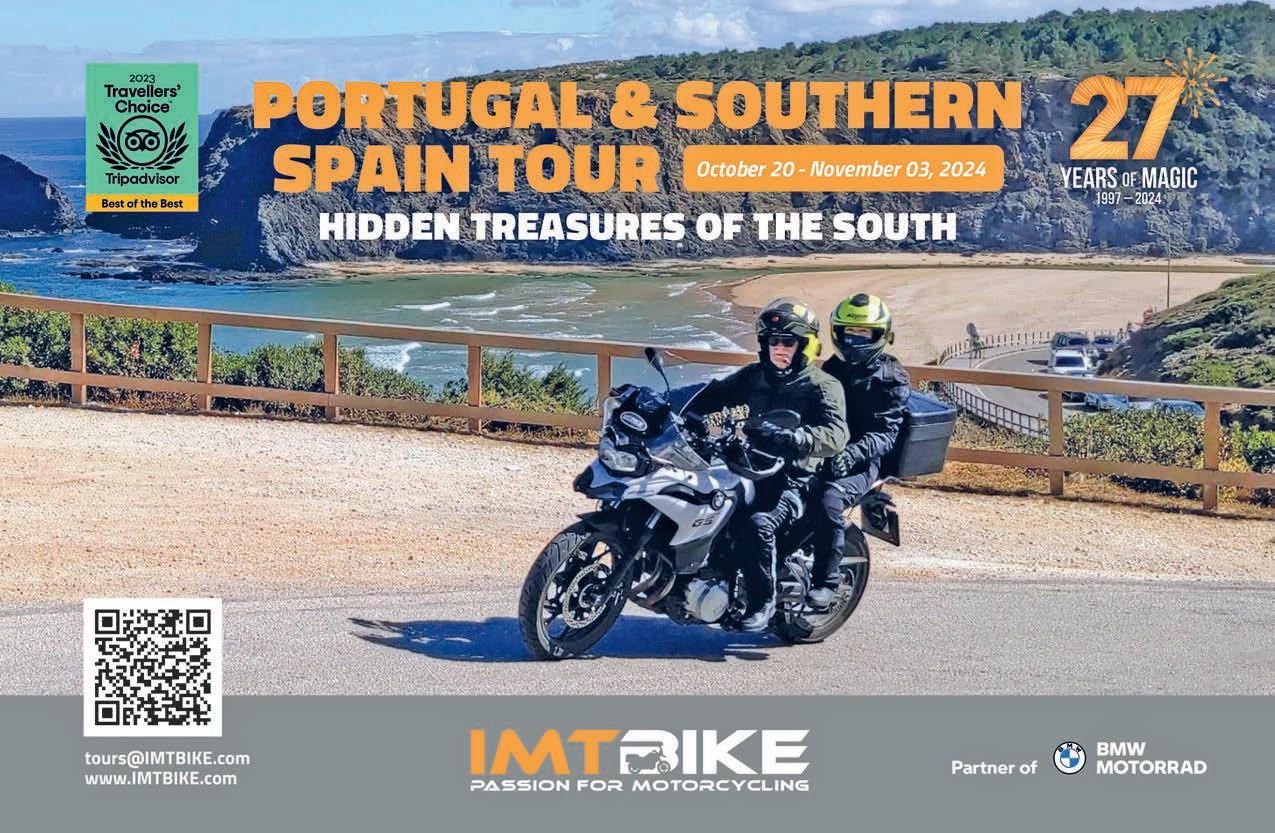 BACKROADS (ISSN 1087-2088) is published monthly by BACKROADS™, Inc. 2024. All rights reserved. BACKROADS™ may not be reproduced in any manner without specific written consent from the publisher. BACKROADS™ welcomes and encourages submissions (text and photos) and suggestions. Include phone number with submissions. BACKROADS™ will only return material with enclosed sufficient postage. The written articles and opinions printed in BACKROADS™ are not necessarily those of the publisher and should not be considered an endorsement. The Rip &Rides® published are ridden on the sole responsibilty of the rider. BACKROADS™ is not responsible for the conditions of the public roadways traversed. Please respect the environment, read your owner’s manual and wear proper protective gear and helmet. Ride within your limits, not over them.