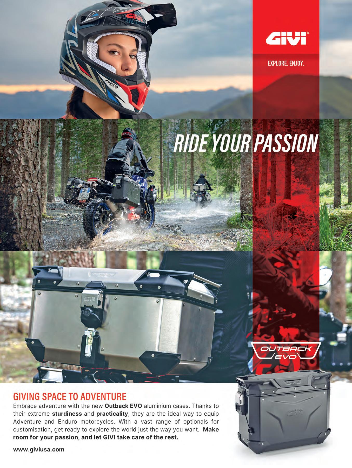 BACKROADS (ISSN 1087-2088) is published monthly by BACKROADS™, Inc. 2025. All rights reserved. BACKROADS™ may not be reproduced in any manner without specific written consent from the publisher. BACKROADS™ welcomes and encourages submissions (text and photos) and suggestions. Include phone number with submissions. BACKROADS™ will only return material with enclosed sufficient postage. The written articles and opinions printed in BACKROADS™ are not necessarily those of the publisher and should not be considered an endorsement. The Rip &Rides® published are ridden on the sole responsibility of the rider. BACKROADS™ is not responsible for the conditions of the public roadways traversed. Please respect the environment, read your owner’s manual and wear proper protective gear and helmet. Ride within your limits, not over them.