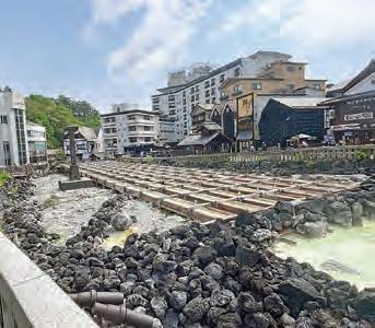 Before leaving the region we took a quick ride around the town of Kusatsu’s center, viewing the Yubatake, which emits a constant flow of steaming hot, mineral-rich water that is the source of the town’s fame Onsens. This near-boiling water is so hot that it traditionally was stirred by the town’s women, with a wooden paddle, to cool it without diluting its mineral content. The method, called yumomi, is a rhythmic performance, accompanied by traditional folk songs. Today, the center of town has a series of wooden baffles that do the job, but the tradition remains many times each day.