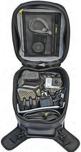 The Hurricane Bag is seriously tough, and very well made from heavy-duty UV-treated PVC Tarpaulin material, with all the seams elec tronically heat welded. Inside it uses an adjustable divider to help keep your tank bag gear in order, and a clear touch-friendly screen for smart phone directions or maps. Getting in and out of this bag is very simple, and quick.