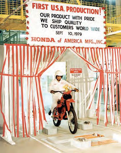 Honda began international mass production of motorcycles at its first overseas production facility in Belgium in 1963 and, since then, has expanded its production globally in accordance with its fundamental principle of producing locally where there is demand. Honda began North American production of motorcycles in 1979, at the Honda of America Mfg., Inc. plant in Marysville, Ohio, where 64 associates began producing the CR250M Elsinore dirt bike. That first motorcycle rolled off the production line on September 10, 1979.