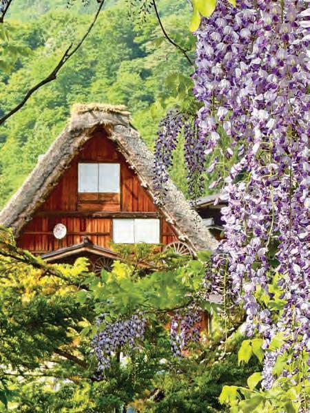 Shirakawa-Go is an ancient town that lies along a valley in the Shogawa River Valley – with its mighty flow and deep green waters running from the melting snowpack high above. The town is filled with traditional gassho-zukuri farmhouses, constructed like “Hands in Prayer,” with deep, very thick, and strongly pitched thatched roofs. It snows heavily in this part of Japan and there are signs throughout the village to beware of falling snow tumbling off the roofs. These roofs cover enormous multi-level attics, that were used for centuries in the cultivating of silkworms.