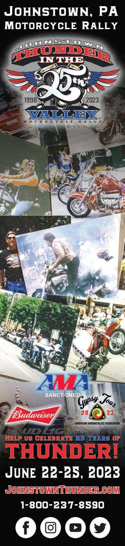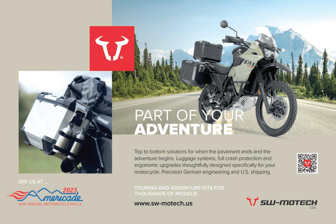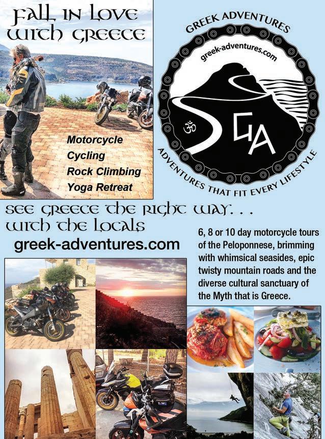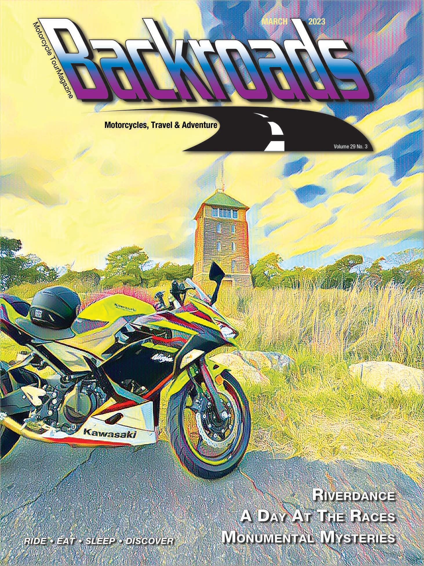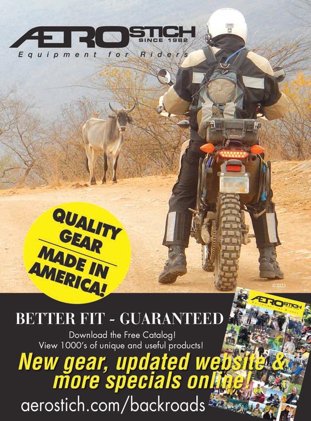 BACKROADS (ISSN 1087-2088) is published monthly by BACKROADS™, Inc. 2023. All rights reserved. BACKROADS™ may not be reproduced in any manner without speci c written consent from the publisher. BACKROADS™ welcomes and encourages submissions (text and photos) and suggestions. Include phone number with submissions. BACKROADS™ will only return material with enclosed suf cient postage. The written articles and opinions printed in BACKROADS™ are not necessarily those of the publisher and should not be considered an endorsement. The Rip &Rides® published are ridden on the sole responsibilty of the rider. BACKROADS™ is not responsible for the conditions of the public roadways traversed. Please respect the environment, read your owner’s manual and wear proper protective gear and helmet. Ride within your limits, not over them.