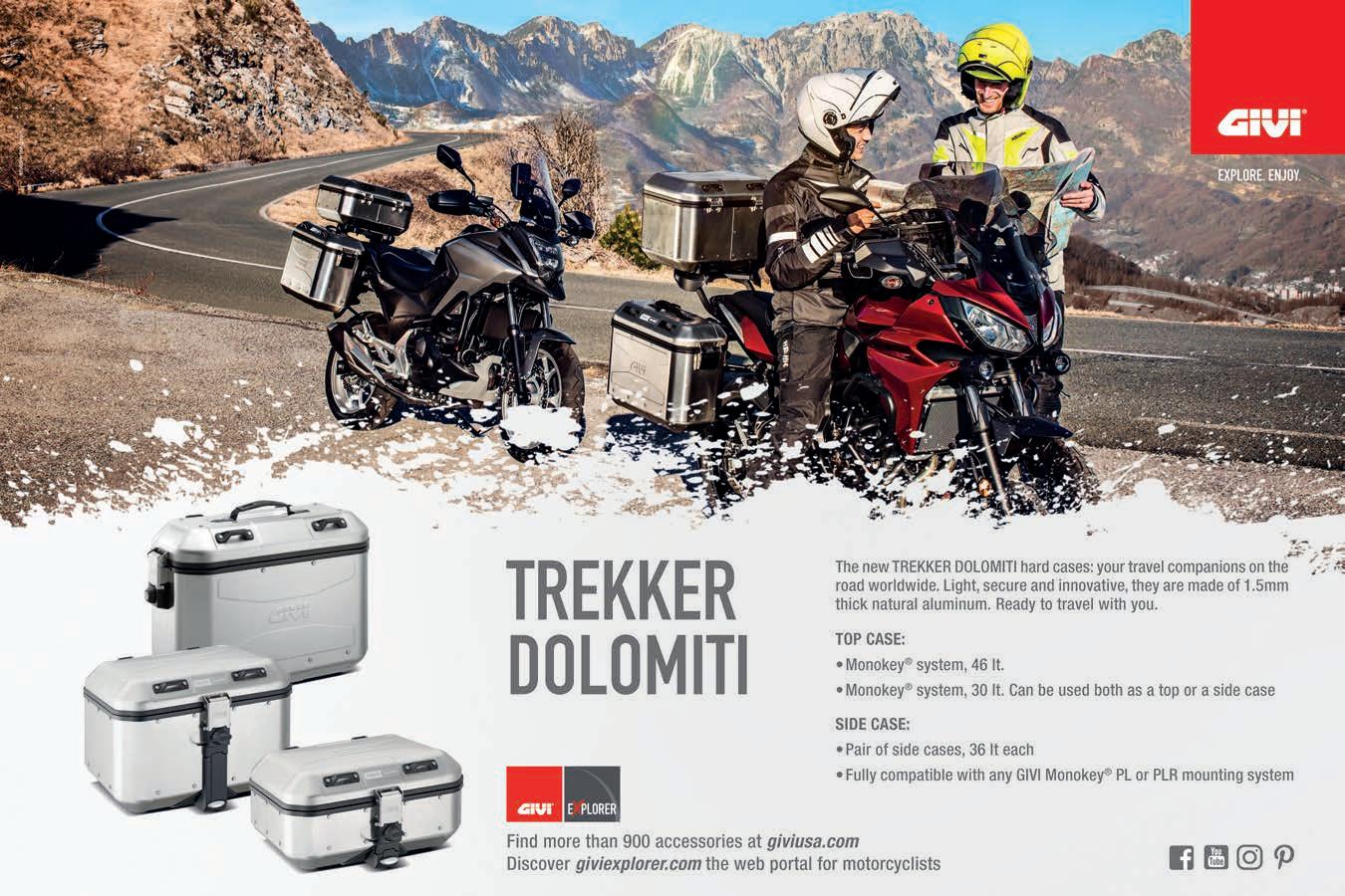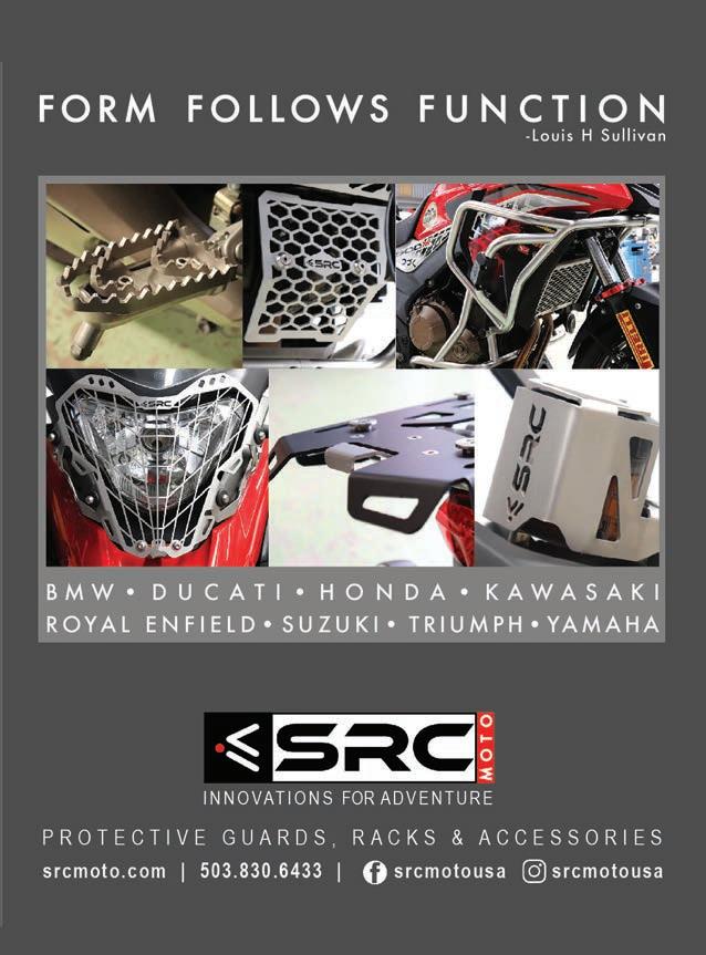 I strongly remember our rst trip to South Africa, riding a BMW R1100, and not having much experience at all off-road. The words of Don McDaniels, who we met on this trip and has become a good friend, resonate in my ears to this day - ‘Get on the pegs, keep your eyes up and throttle on.’ There were plenty of situation where I should have been a bit tentative - the pass in Italy when they were working on the road in front of us or making our way to Lake Como through a snow stormbut for whatever reason, I was pretty calm and just carried on.