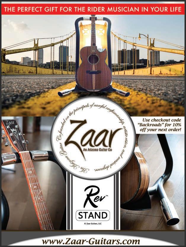 BACKROADS (ISSN 1087-2088) is published monthly by BACKROADS™, Inc. 2024. All rights reserved. BACKROADS™ may not be reproduced in any manner without speci c written consent from the publisher. BACKROADS™ welcomes and encourages submissions (text and photos) and suggestions. Include phone number with submissions. BACKROADS™ will only return material with enclosed suf cient postage. The written articles and opinions printed in BACKROADS™ are not necessarily those of the publisher and should not be considered an endorsement. The Rip &Rides® published are ridden on the sole responsibilty of the rider. BACKROADS™ is not responsible for the conditions of the public roadways traversed. Please respect the environment, read your owner’s manual and wear proper protective gear and helmet. Ride within your limits, not over them.