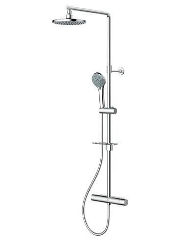 FM Mattsson SiljanTakduschpaket 160 cc. Med sÀkerhetsblandare Siljan och takdusch Siljan. Tak- och handdusch med kalkavvisande sil. Eco Flow, 3-strÄlig handdusch 7,5 l/min och takdusch 11 l/min. Slang, duschstÄng med vÀggtÀtning (kan kapas vid behov), tvÄlhylla ingÄr. VÀggfÀste justerbart. Energieffektivt takduschpaket med forcerbart Eco-stop.