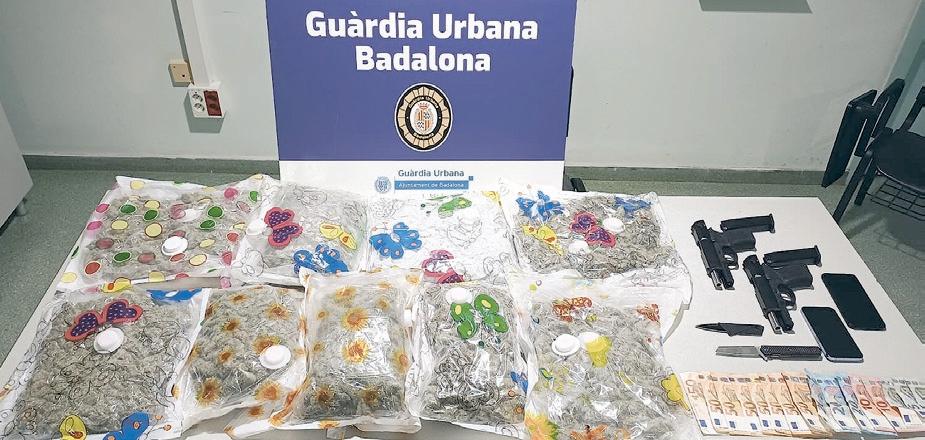 Policial de la Guàrdia Urbana van detenir ahir dijous a un jove de 20 anys que portava al seu vehicle més de 5 quilos de marihuana i dues pistoles.