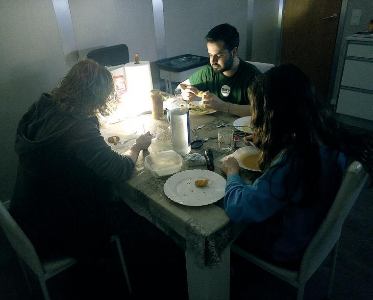 A la foto, una família del barri del Progrés sopant amb llanternes aquella nit. La llum va tornar a aquest barri a les 12,40 de la mitjanit.