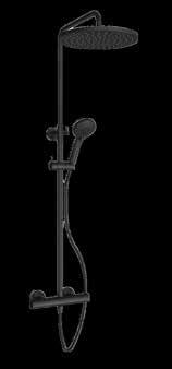 Elegant takdusjløsning med 250 mm dusjhode. Hånddusjen har 3 innstillinger på strålen. Dusjstangen er også kappbar, og kan utmerket passe i en dusjsone med skråtak. Sort matt. 13.990,-