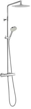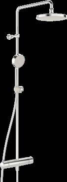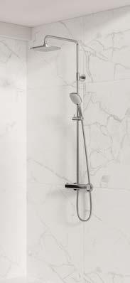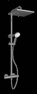 Rainshower med termostatbatteri og skoldesperre som gjør det trygt for de minste. Høydejusterbar toppdusj gjør dusjen enkel i bruk.